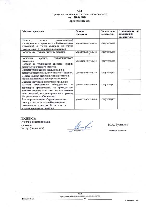 Сертификат соответствия от органа по сертификации СДС ТехСтандарт