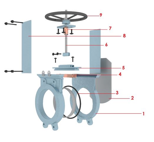 Задвижка серии СНМ 5854 используется для транспортировки жидкостей с содержанием взвешенных частиц до 5% или волокнистых включений до 35%, а также подачи самотеком сухих гранулированных и порошковообразных веществ.