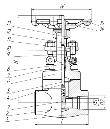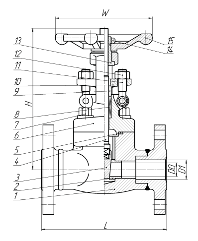 | DN | D0 | D2 | L | W | H (в полжении "открыто") | Вес, кг |
