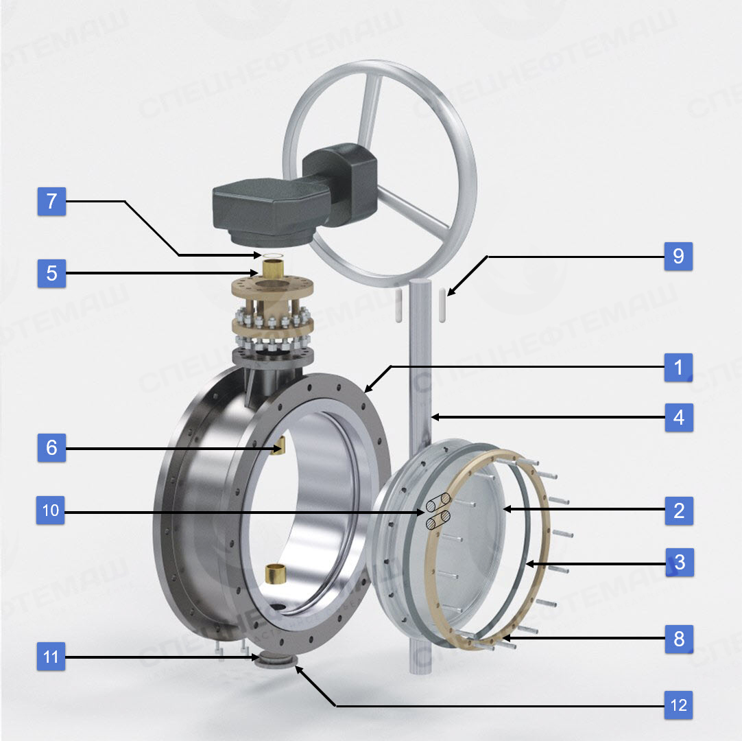 Детализация затвора с тройным эксцентриситетом СНМ 58090